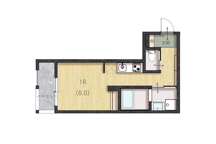 | 間取り | 1R | 面積 | 24.77m² |